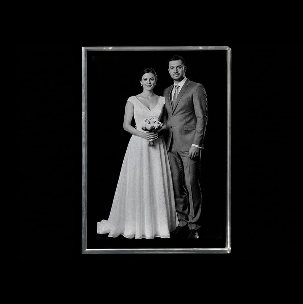 A low-depth rectangular crystal focused on front-facing engraving.
